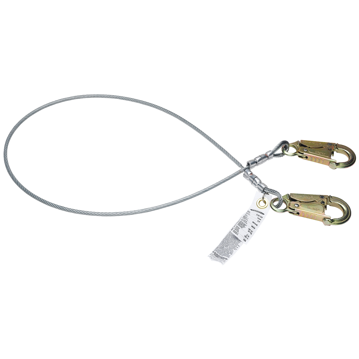 The Werner C161102 positioning and restraint lanyards do not include any energy absorption features, so they are intended for work positioning and restraint applications only. Vinyl coated 1/4 inch cable is heat and abrasion resistant. The snap hook is designed to prevent false engagement.